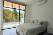 -Bedroom #2 with attached bathroom, walk-in closet, and balcony with backyard jungle/pool views.
